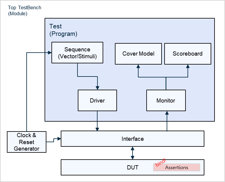 - 클럭 기반으로 여러 사이클에 걸쳐 동작을 검증합니다.