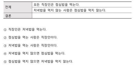 전제 2의 대우) 점심밥을 먹는 사람은 저녁밥을 먹는다.